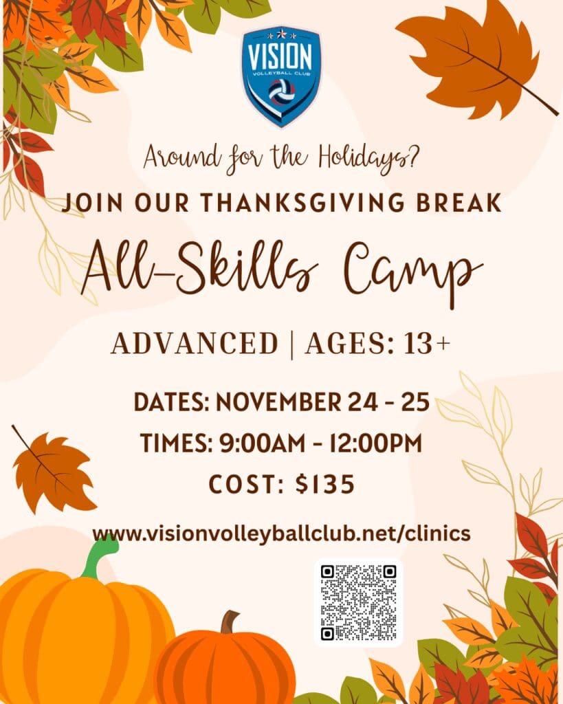 Advanced All-Skills Camp – Thanksgiving Week Training Sticking around for the Thanksgiving holiday? Get high-quality reps in before the long weekend with our Advanced All-Skills Camp – two days of intensive 3-hour training sessions designed for experienced volleyball athletes ready to train at a competitive level. Camp Dates: November 24th – 25th | 9:00AM – 12:00PM Cost: $135 /…